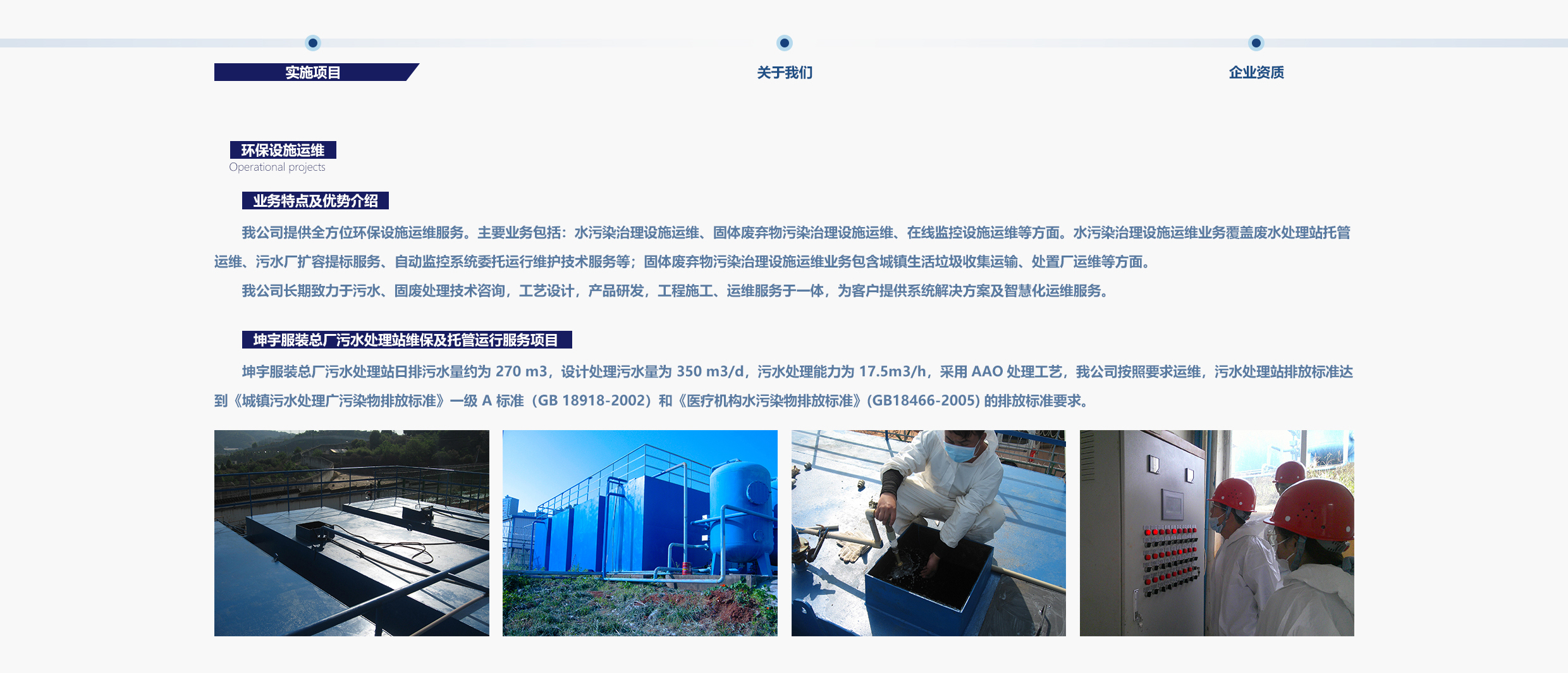 我公司提供全方位環(huán)保設(shè)施運維服務(wù)。主要業(yè)務(wù)包括:水污染治理設(shè)施運維、固體廢棄物污染治理設(shè)施運維、在線監(jiān)控設(shè)施運維等方面。水污染治理設(shè)施運維業(yè)務(wù)覆蓋廢水處理站托管運維、污水廠擴容提標(biāo)服務(wù)、自動監(jiān)控系統(tǒng)委托運行維護技術(shù)服務(wù)等;固體廢棄物污染治理設(shè)施運維業(yè)務(wù)包含城鎮(zhèn)生活垃圾收集運輸、處置廠運維等方面。