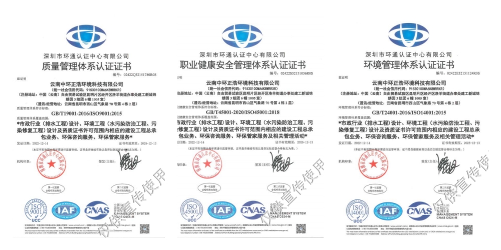 云南中環(huán)正浩環(huán)境科技有限公司成立于2016年12月09日,企業(yè)的經(jīng)營范圍為:許可項目:地質(zhì)災(zāi)害治理工程施工;地質(zhì)災(zāi)害治理工程監(jiān)理;地質(zhì)災(zāi)害治理工程勘查;地質(zhì)災(zāi)害治理工程設(shè)計;各類工程建設(shè)活動;地質(zhì)災(zāi)害危險性評估;建設(shè)工程勘察;建設(shè)工程設(shè)計。一般項目:環(huán)保咨詢服務(wù);生態(tài)資源監(jiān)測;環(huán)境保護監(jiān)測;固體廢物治理;地質(zhì)災(zāi)害治理服務(wù);土壤污染治理與修復(fù)服務(wù);土壤環(huán)境污染防治服務(wù);水污染治理;水環(huán)境污染防治服務(wù);大氣污染治理;大氣環(huán)境污染防治服務(wù);生態(tài)恢復(fù)及生態(tài)保護服務(wù);技術(shù)服務(wù)、技術(shù)開發(fā)、技術(shù)咨詢、技術(shù)交流、技術(shù)轉(zhuǎn)讓、技術(shù)推廣;專業(yè)保潔、清洗、消毒服務(wù);環(huán)境保護專用設(shè)備銷售;環(huán)境監(jiān)測專用儀器儀表銷售;貨物進出口;技術(shù)進出口。持有住建部門頒發(fā)的市政行業(yè)專業(yè)乙級和環(huán)境工程專項乙級工程設(shè)計資質(zhì)證書、國家發(fā)改委備案的工程咨詢單位證書(備案編號 9153010MA6K8WRRXR-20)、環(huán)境保護污染治理資質(zhì)乙級證書、環(huán)保管家資質(zhì)證書、環(huán)境咨詢認證證書等。