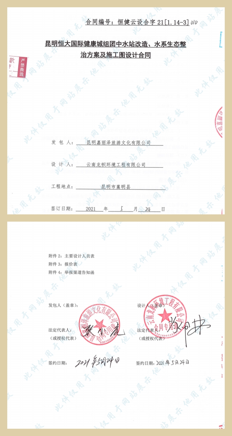1、項目名稱:昆明恒大國際健康城組團中水站改造、水系生態(tài)整治設(shè)計工程